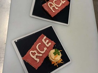 A Casa Gusto è stato fatto un piccolo omaggio culinario per Sinner, da parte dei macellai, che hanno preparato una battuta di fassona, accompagnata da gelato all'ACE e julienne di carote.