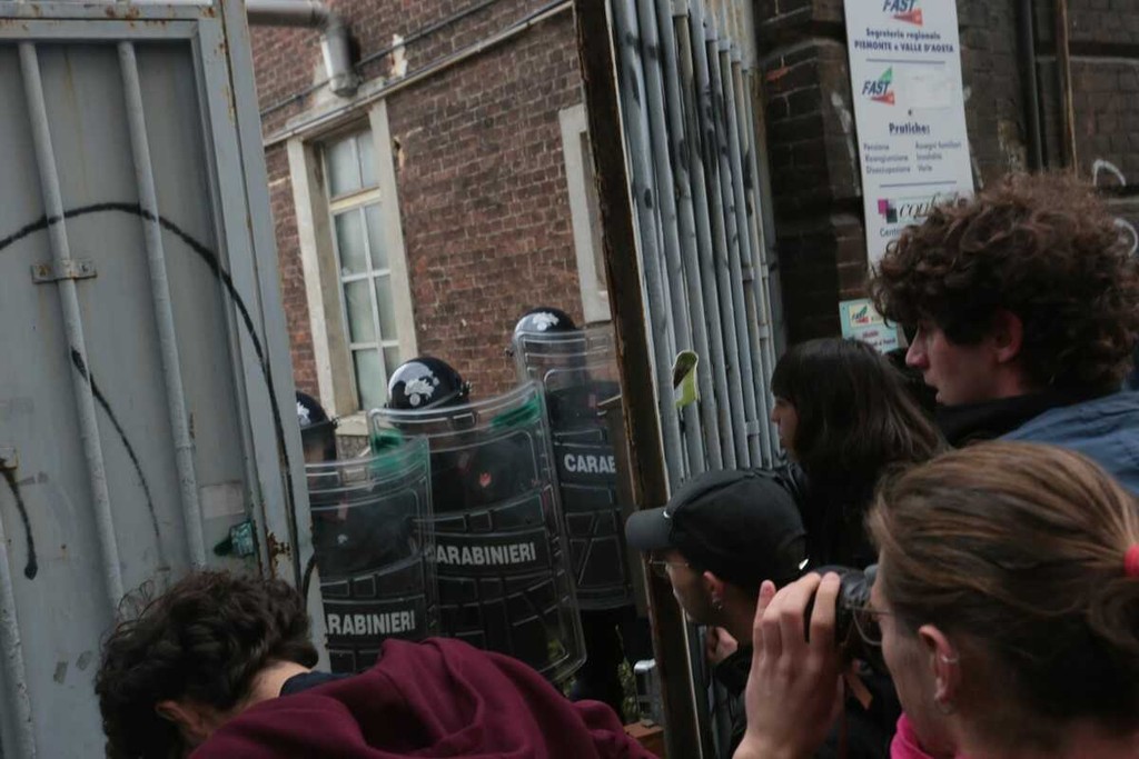 Un gruppo di manifestanti si è staccato dal corteo all'altezza di Porta Nuova, correndo verso via Sacchi. Qualche decina ha tentato un'irruzione all'interno del Fast, Federazione Autonoma Sindacato dei Trasporti. Hanno cercato di aprirsi un valico per provare ad arrivare sui binari, ma sono stati respinti da carabinieri in tenuta antisommossa.
