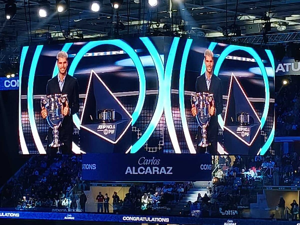 "È un grande piacere per me essere il numero uno al mondo: è una cosa per cui bisogna lavorare duramente. Vuol dire tutto per me, un mondo". È questo il messaggio lanciato dal tennista Carlos Alcaraz, che questo pomeriggio sul palco centrale dell'Inalpi Arena ha ricevuto il premio come numero 1 Atp del 2025. Per lui è la seconda volta, dopo il 2022, quando però un infortunio gli impedì di partecipare al torneo dei 'Maestri' a Torino.