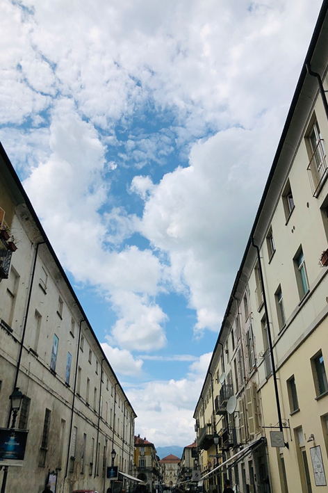 Fuori, c’è la piazza con la Torre dell’Orologio che segna il confine con il Borgo. Le vecchie caserme oggi ospitano caffè, librerie, mostre. Le strade dove passavano cavalli e servitori ora accolgono famiglie, studenti, turisti. Una cittadina viva che rappresenta un luogo attuale. La bellezza non è più esclusiva, è condivisa. Al tramonto, i mattoni diventano rame e la luce scivola lenta sui portici. Le persone si fermano a guardare, qualcuno fotografa, altri restano in silenzio. La Reggia, immobile, sembra respirare davvero: non come un monolite, ma come un organismo che ha imparato a convivere con la propria memoria. Visitare questo luogo non significa soltanto attraversare la storia dei Savoia, ma comprendere un’idea di potere tradotta in proporzioni e in spazio. Qui la forma è sostanza, e la misura è linguaggio!