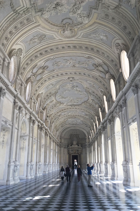 La Galleria di Diana è il cuore visivo del complesso. Lunga quasi ottanta metri, sembra respirare. Il pavimento a scacchi, i marmi, la luce che rimbalza sulle pareti bianche: tutto vibra di un ordine ipnotico. Ogni passo è un’eco, ogni finestra una scenografia. È un luogo che non si attraversa soltanto. In quell’armonia quasi matematica, si percepisce un paradosso: il barocco che, invece di esplodere, si ritrae. Qui la magnificenza è razionale, la bellezza disciplinata. Nei sotterranei, la luce scompare. Le pareti in mattoni assorbono il rumore, la temperatura scende. Si entra nella Galleria dei Ritratti Sabaudi, un archivio visivo del “Regno”: volti severi, corazze lucenti, sguardi fermi. Non c’è emozione, solo intenzione. Ogni posa è un atto politico, ogni dettaglio un messaggio di legittimità. Camminando in quel silenzio, si capisce che il potere non è mai soltanto dominio: è costruzione, rappresentazione, disciplina del proprio mito.