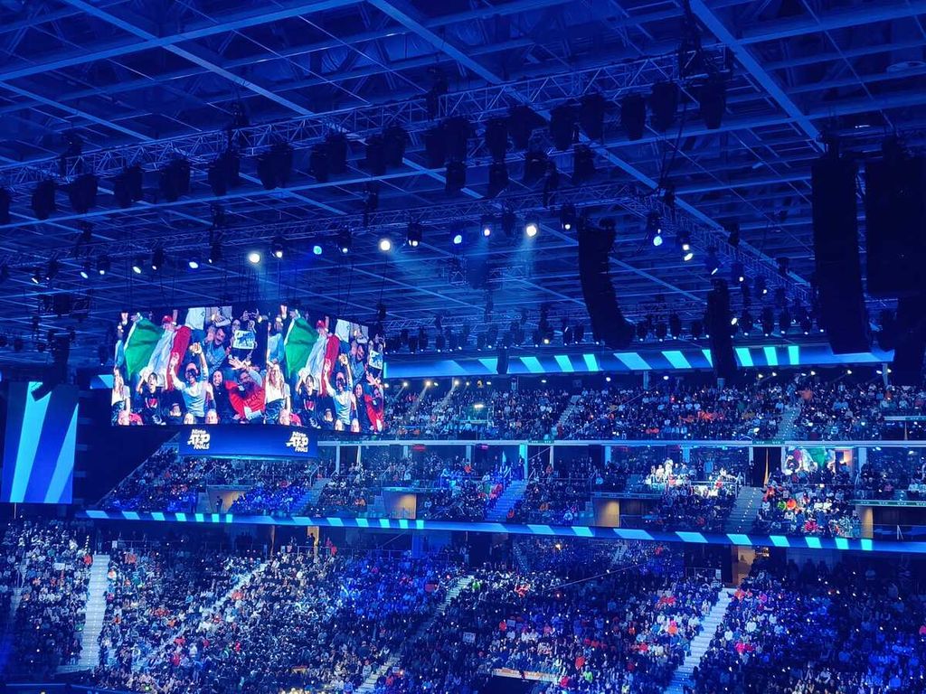 Poco prima dell'inizio del match, dal pubblico è partito il grido "Forza Jannik". E tra bandiere dell'Italia, magliette, parrucche arancioni e persone vestite da carota, gli spettatori erano tutti per Sinner. Quando si comincia, dopo l'inno di Mameli cantato da Il Volo, l'Inalpi Arena regala un colpo d'occhio spettacolare: non c'è una sola seggiola vuota in tutto l'impianto. Si parte con Alcaraz al servizio, con il numero uno al mondo che tiene la battuta senza problemi, idem la replica di Sinner, che però sull'1-2 è costretto ai vantaggi per acciuffare la parità.