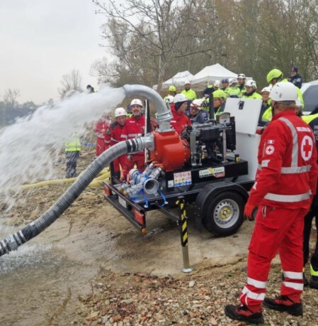 Alla simulazione di intervento ha preso parte anche la Croce Rossa di Nichelino: una trentina di volontari hanno simulato un intervento congiunto di allestimento di un campo di soccorso con torri faro. Nell'esercitazione e' stata utilizzata una pompa idrovora per liberare le zone interessate dall'acqua, howerkraft e gommoni per il soccorso in acqua e un drone per la ricerca di persone disperse.