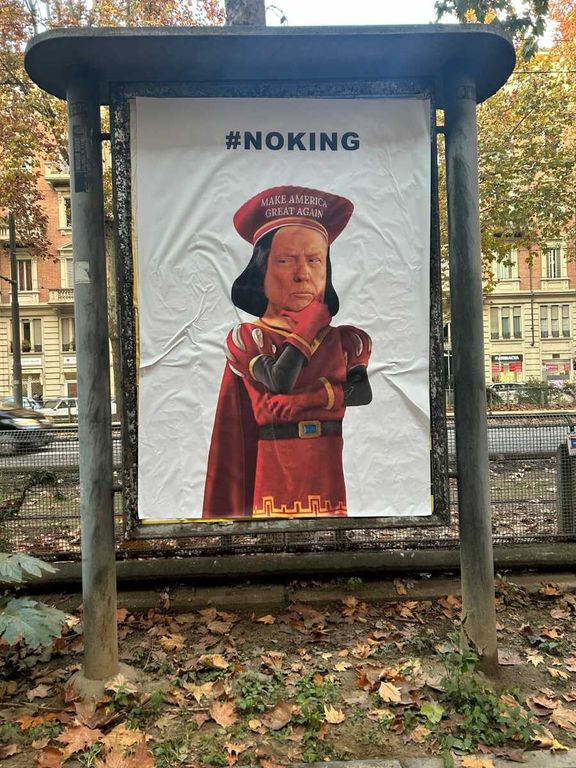 "È un megalomane". A Torino Donald Trump diventa Lord Farquaad di Shrek