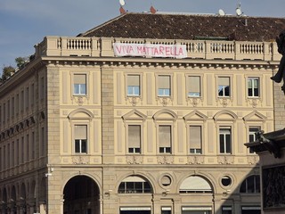 Nuovo striscione a sostegno del presidente della Repubblica in piazza San Carlo. Nelle scorse ore è ricomparso, appeso al quarto piano dell’edificio che fa angolo con via Roma, il lenzuolo bianco con su scritto "Viva Mattarella".