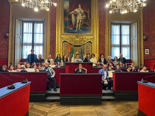 Questa mattina, 20 novembre, la classe V C della scuola primaria Sibilla Aleramo di Torino è stata ricevuta a Palazzo Civico, nella Sala Rossa del Consiglio Comunale, per celebrare la vittoria ottenuta al Premio Teresa Sarti Strada, promosso da Emergency, nella categoria “elaborati grafici”.
