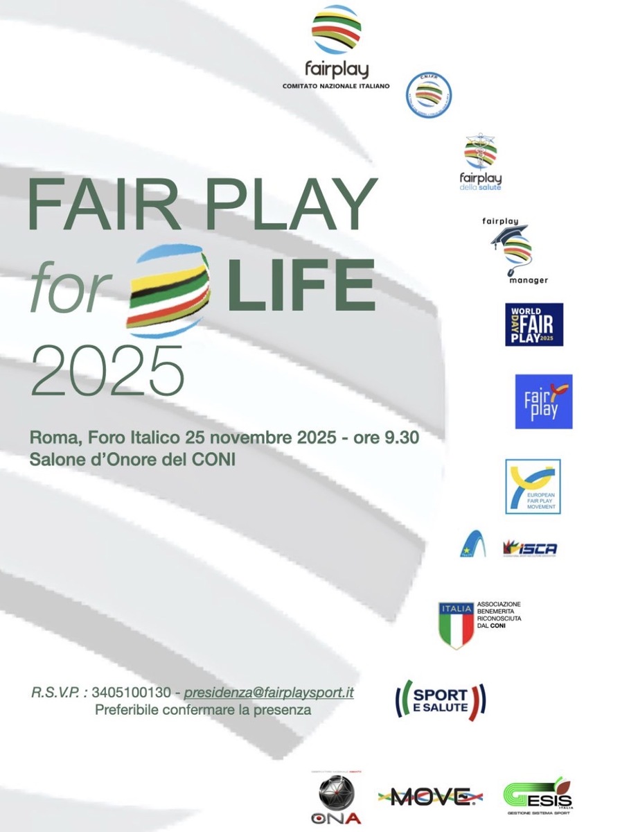 Nell’ambito delle iniziative previste per il 25 novembre, si inserisce anche l’impegno del Comitato Nazionale Italiano Fair Play del CONI, di cui Bonanni è vicepresidente. Il 25 novembre si terrà presso la Sala d’Onore del Coni l’evento “Fair Play for Life”. L’associazione, tradizionalmente legata alla promozione dei valori sportivi, intende contribuire alla diffusione di principi di rispetto, correttezza e lealtà. Proprio questi temi saranno al centro dell’evento dedicato, come ricorda lo stesso Bonanni: «Il Comitato Nazionale Italiano Fair Play si prefigge l’affermazione dei valori della lealtà e della correttezza, in netto contrasto con le follie omicidiarie a cui stiamo assistendo.»