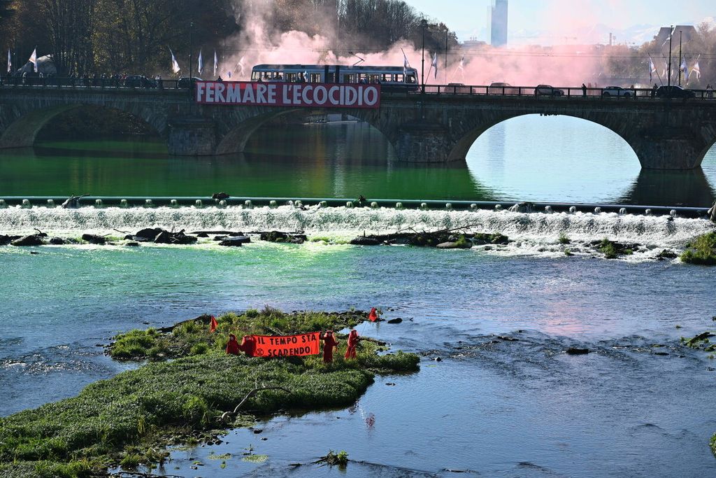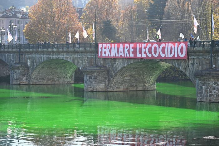Acqua verde ai Murazzi, l'azione di XRebellion durante la Cop30: "Fermare l’ecocidio"