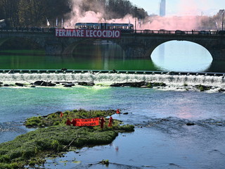 Un'acqua verde brillante ha sorpreso questa mattina chi passeggiava lungo i Murazzi, nel tratto torinese del fiume Po. Non si è trattato di inquinamento, ma di una protesta dimostrativa messa in atto dagli attivisti di Extinction Rebellion, che hanno scelto dieci città italiane per lanciare un messaggio in occasione dei giorni conclusivi della COP30 in corso a Belém, in Brasile.
