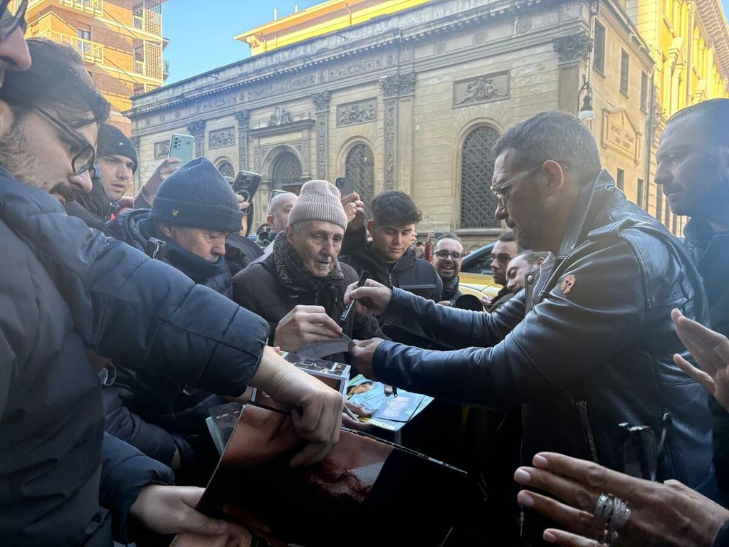 I fan torinesi lo hanno accolto chiedendo selfie e autografi. L’attore spagnolo si è prestato volentieri prima di entrare in conferenza stampa al Torino Film Festival.