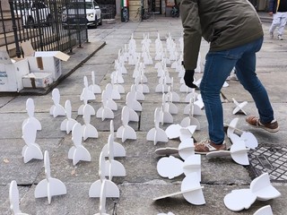 "La crisi è in tutto il paese ma in questa città è accentuata: manca lavoro, si vede che la gente conta le monete nel borsellino. All'amministrazione chiediamo un po' più di coraggio." ha spiegato Giancarlo Nardozzi, presidente dell'associazione GOIA. Sull'asfalto decine di "teste" cadute a terra, a simboleggiare le attività che non ce l'hanno fatta e hanno dovuto chiudere, colpite dalla crisi del settore e dalle difficoltà: "Queste teste rappresentano le tante teste cadute dei colleghi che hanno chiuso, e altrettante ne cadranno nei prossimi mesi".
