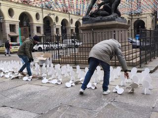 "La crisi è in tutto il paese ma in questa città è accentuata: manca lavoro, si vede che la gente conta le monete nel borsellino. All'amministrazione chiediamo un po' più di coraggio." ha spiegato Giancarlo Nardozzi, presidente dell'associazione GOIA. Sull'asfalto decine di "teste" cadute a terra, a simboleggiare le attività che non ce l'hanno fatta e hanno dovuto chiudere, colpite dalla crisi del settore e dalle difficoltà: "Queste teste rappresentano le tante teste cadute dei colleghi che hanno chiuso, e altrettante ne cadranno nei prossimi mesi".