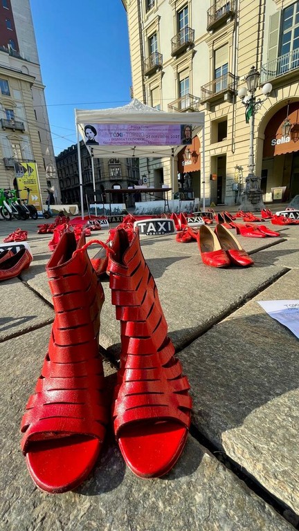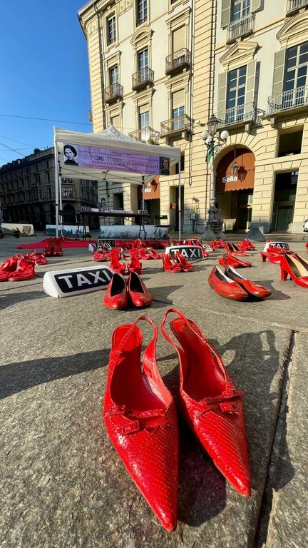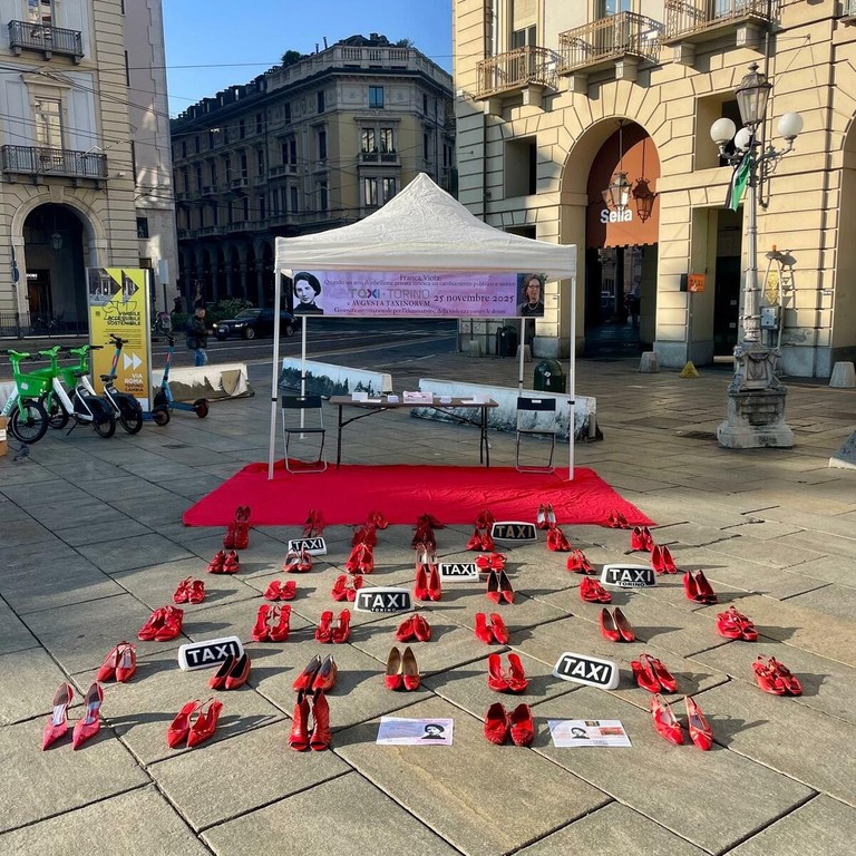 Scarpe rosse. A spillo, con tacco, senza tacco, ciabatte, stivaletti, scarpe rotte, insomma scarpe, ma rigorosamente rosse! Nella mattina di oggi, martedì 25 novembre 2025, Taxi Torino con il gruppo AVGVSTA TAXINORVM si ritrova in piazza Castello, lato via Pietro Micca, fino alle ore 16 per ricordare la Giornata internazionale per l'eliminazione della violenza contro le donne.