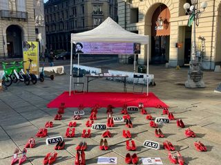 Scarpe rosse. A spillo, con tacco, senza tacco, ciabatte, stivaletti, scarpe rotte, insomma scarpe, ma rigorosamente rosse! Nella mattina di oggi, martedì 25 novembre 2025, Taxi Torino con il gruppo AVGVSTA TAXINORVM si ritrova in piazza Castello, lato via Pietro Micca, fino alle ore 16 per ricordare la Giornata internazionale per l'eliminazione della violenza contro le donne.