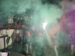 Ore 20.25 Il corteo di Non Una Di Meno ha deviato lungo il ponte del Valentino, dove i partecipanti hanno acceso numerosi fumogeni, creando un’atmosfera intensa e visivamente d’impatto lungo il percorso.
