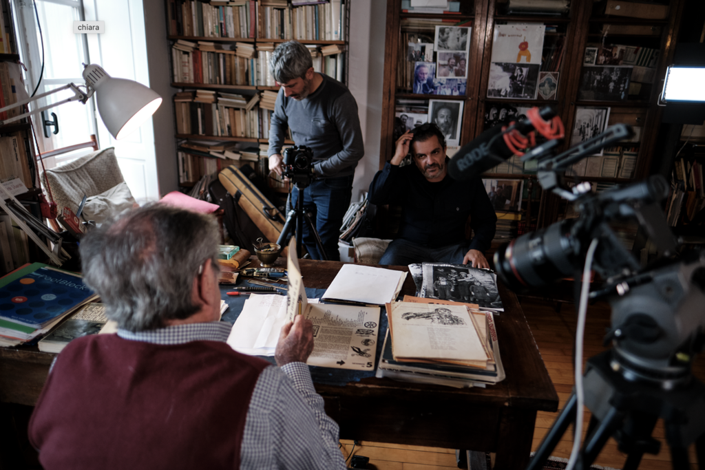 “Sapevo che esisteva questo archivio perché ho sempre avuto la passione per la musica popolare a un certo punto per un lavoro sugli archivi mi sono chiesto dove fosse il CREO (Centro Ricerca Etnomusica e Oralità) così ho incontrato Emilio, aveva 95 anni. Ha iniziato a raccontarmi la sua storia e quella dei Cantacronache. L’idea era di sempre rendere questo colloquio il più possibile informale, come se lo spettatore entrasse in casa di Emilio e di Fausto”.