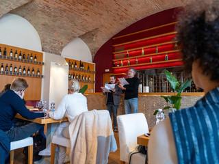 Il sabato è stato il giorno più intenso, quasi rituale. Nel workshop internazionale del mattino le sette destinazioni hanno lavorato insieme come un’unica comunità enologica, condividendo pratiche, criticità e visioni. Da questo confronto serrato è nato l'impegno a dar vita alla Carta dell’Enoturismo, presentata come un impegno collettivo verso un modello di turismo più umano e più consapevole. Intanto, nelle stanze del Castello, il pubblico viveva un percorso sensoriale ininterrotto: dalle creazioni gastronomiche di Fulvio Siccardi – con il suo iconico Uovo in Gabbia e Tartufo Bianco d’Alba servito con Barolo DOCG – fino alle cinque Degustazioni Culturali, dove ogni annata diventava la scintilla di un dialogo con l’arte, il teatro, la letteratura, il design.