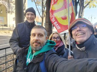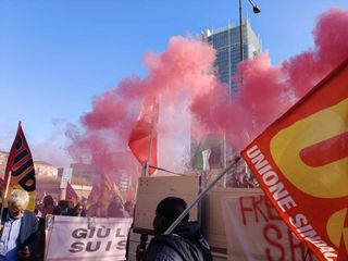 E sono le centinaia le persone che questa mattina si sono ritrovate davanti all'ex Porta Susa, dai sindacati Cobas ed USB, pro Palestina, studenti degli istituti superiori,.... In testa al serpentone gli striscioni "Giù le armi, su i salari", "Non un euro per la guerra" e "Blocchiamo tutto! A difesa della Palestina". Presenti anche i taxisti torinesi, con lo striscione del sindacato di base Usb che chiede interventi a sostegno della categoria.