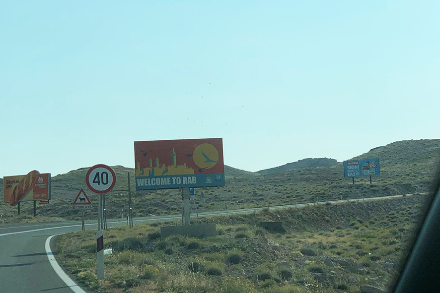Sono partita con un volo per Zara. Da lì ho noleggiato un’auto e ho guidato per circa due ore costeggiando il mare. È stato un itinerario sorprendente: la strada seguiva la costa tra scogliere, insenature improvvise e un Adriatico ipnotico, denso di luce. Ogni curva apriva un nuovo quadro — villaggi, calette deserte, rocce scolpite dal vento. Un paesaggio essenziale, aspro e bellissimo. Arrivata al porto di Stinica, ho preso il traghetto diretto a Rab: una breve navigazione, il tempo di sentire il vento caldo sulla pelle e guardare l’isola avvicinarsi piano. È lì, sul ponte, con l’odore del sale e la linea frastagliata dell’orizzonte davanti a me, che ho realizzato davvero di essere partita.