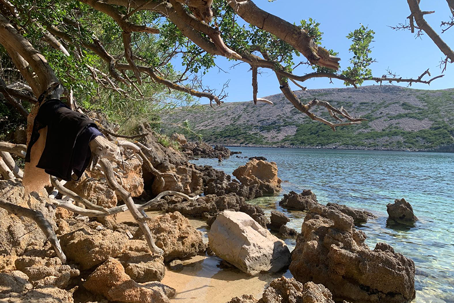 Direi che c’è una parola chiave: spazio. Pochi rumori, poche persone, nessuna frenesia. Le spiagge sono isolate, spesso scomode, e proprio per questo più preziose. Se ami camminare, cercare, esplorare, è il posto giusto: ogni bellezza te la devi guadagnare, e questo restituisce felicità. Non è l’isola del lettino o della vacanza patinata, ma dell’essenziale. Gli abitanti mi sono sembrati riservati ma autentici: parlano poco, osservano molto, ma quando si aprono lo fanno con sincerità e rispetto. Aiutano con gesti concreti, senza invadenza. La sorpresa più grande è stata la lingua: sull’isola domina il tedesco secondo solo al croato, persino in alcune insegne. La zona è molto legata al turismo del Nord Europa, non me l’aspettavo di certo. Il risultato è un’atmosfera tranquilla e ordinata, dove ognuno vive il mare in modo discreto e personale.