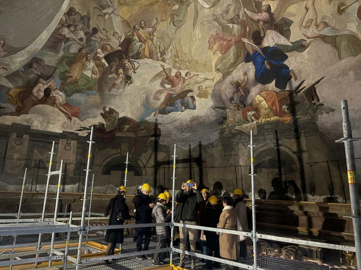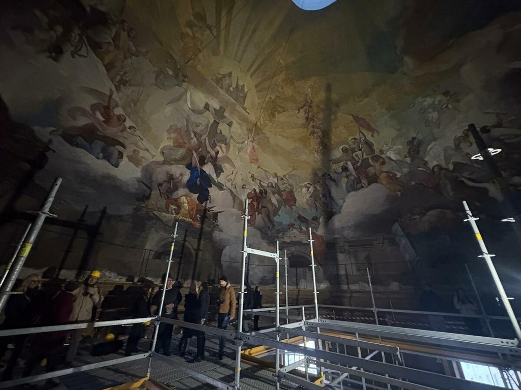 Il grande affresco di Paolo Emilio Morgari “Il trionfo della Croce” è tornato leggibile grazie all’intervento del team di Alina Pastorini. “Abbiamo iniziato il 10 dicembre 2024 con una prima fase di studio e abbiamo terminato con i lavori il 28 luglio” spiega Pastorini.