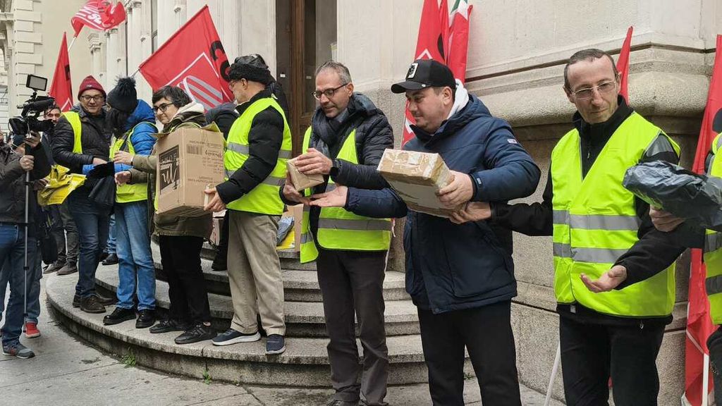 E questa mattina i dipendenti hanno voluto fare sentire la loro voce organizzando un flash mob di fronte alla sede regionale di Poste Italiane, in via Alfieri 10. Dopo aver formato una catena umana, hanno scaricato simbolicamente dei pacchi sulla scalinata.