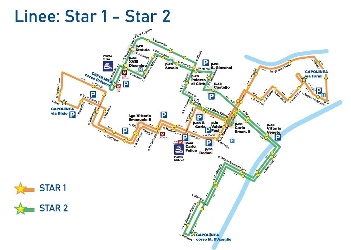 In particolare la linea STAR 1 con il suo percorso dal capolinea di Via Farini al capolinea di Via Bixio offre un importante collegamento tra la zona del Campus Einaudi e il centro di Torino, mentre la linea STAR 2 collega Porta Susa al Parco del Valentino con un percorso strategico nelle principali zone commerciali.