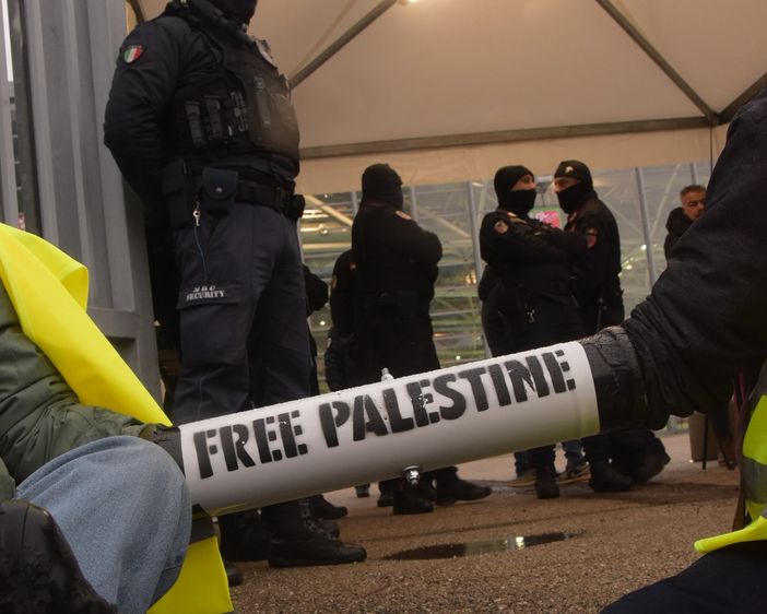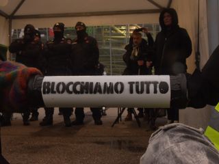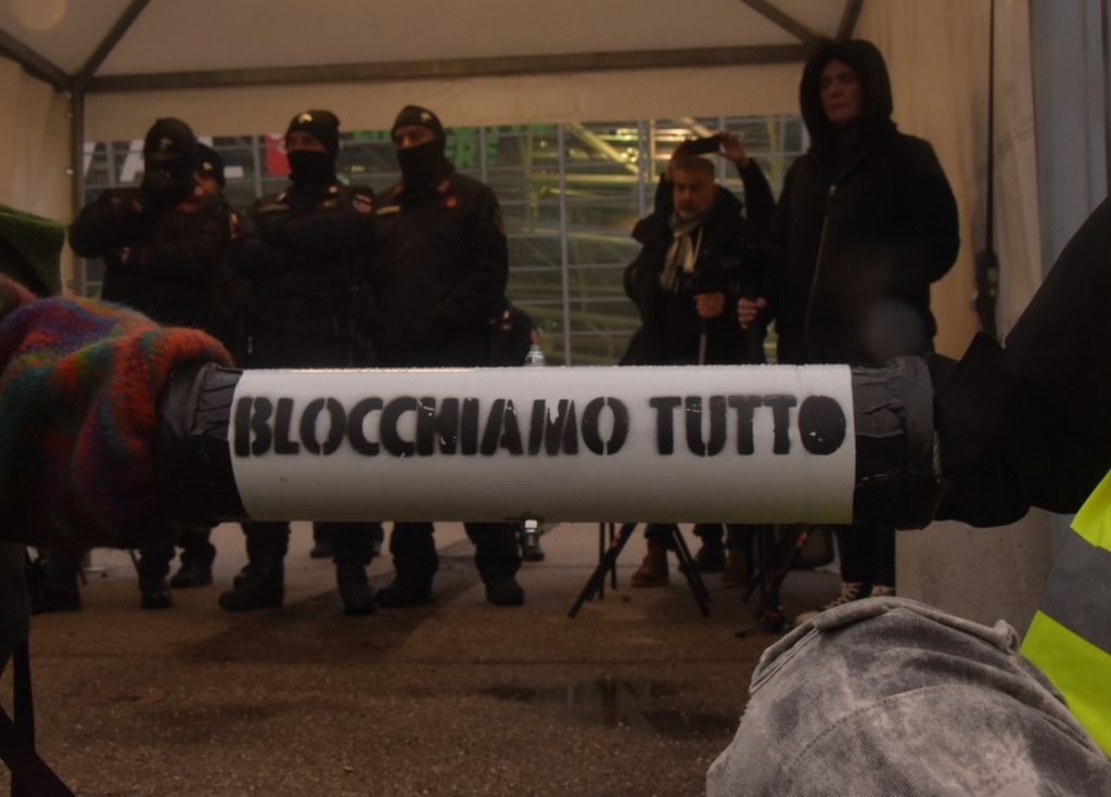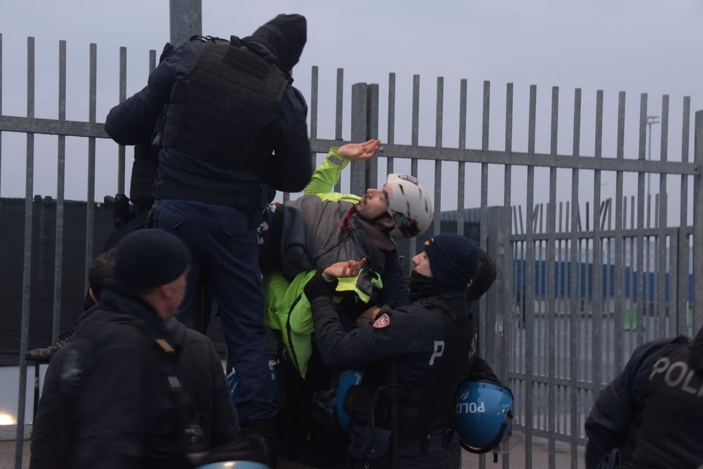 Gli attivisti tornano a protestare, esponendo gli striscioni "Difendere la Terra, non i confini"
