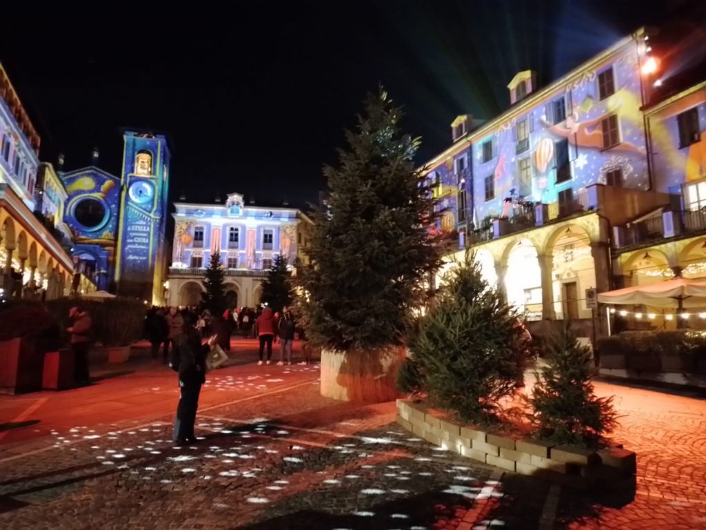 Moncalieri in luce ha acceso il Natale nella Città del Proclama. Da una settimana le luminarie avevano già illuminato vie e borgate, da strada Genova a corso Roma, da via Cavour a via Sestriere, ma nella serata di oggi, 6 dicembre, il videomapping è tornato a illuminare piazza Vittorio Emanuele, il cuore pulsante di Moncalieri, con una narrazione fiabesca caratterizzata da spettacoli di luci in cui spiccano i colori del Natale e proiezioni animate.