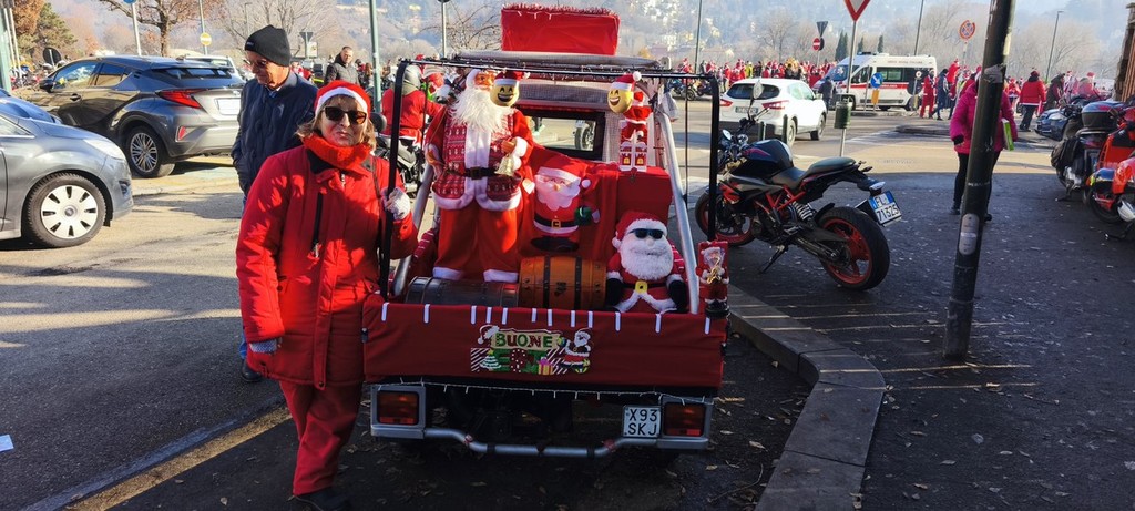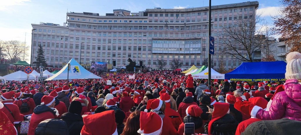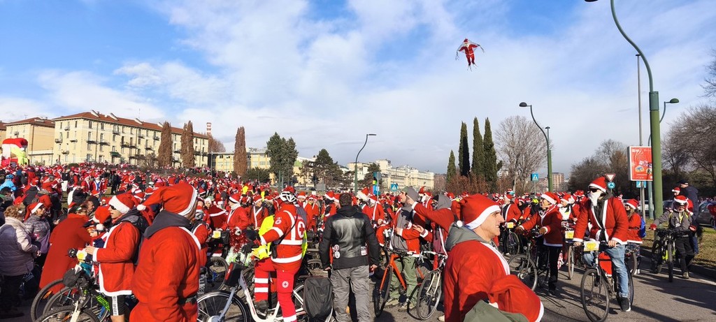 Babbi Natale in bici, a piedi, in moto e anche in canoa sono arrivati in piazza Polonia - oggi piazza Lapponia - per il tradizionale Raduno per i bambini del Regina Margherita. Babbi Natale in moto ma anche "moto Babbo Natale" addobbate a tema, cani vestiti di rosso e aquiloni con barba e baffi bianchi: la fantasia e l'originalità sono di casa, oggi. Quarantamila persone radunate davanti all'ospedale, per aiutare i piccoli pazienti.