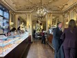 Gli interni, arredati in stile Luigi XVI dalla ditta Valabrega, ricoprono pavimenti e pareti con raffinati stucchi, lampadari originali, decorazioni dorate, un bancone in legno intarsiato anni Venti, grandi specchi incorniciati e tonalità pastello che donano al locale un’eleganza discreta e senza tempo. “Nel mondo fast in cui viviamo oggi, qui si rallenta e si fa un passo indietro verso la tradizione. È un luogo di passaggio, ma anche di meta turistica. Ci sono caffè più storici con una posizione anche più interessante, ma non hanno questo pellegrinaggio per così dire. Qui si respira un’aria di storia che è rimasta presente”.