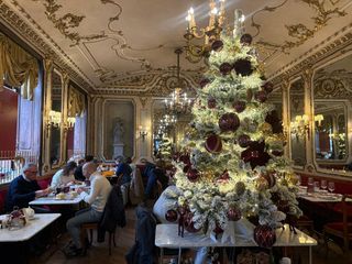 Gli interni, arredati in stile Luigi XVI dalla ditta Valabrega, ricoprono pavimenti e pareti con raffinati stucchi, lampadari originali, decorazioni dorate, un bancone in legno intarsiato anni Venti, grandi specchi incorniciati e tonalità pastello che donano al locale un’eleganza discreta e senza tempo. “Nel mondo fast in cui viviamo oggi, qui si rallenta e si fa un passo indietro verso la tradizione. È un luogo di passaggio, ma anche di meta turistica. Ci sono caffè più storici con una posizione anche più interessante, ma non hanno questo pellegrinaggio per così dire. Qui si respira un’aria di storia che è rimasta presente”.