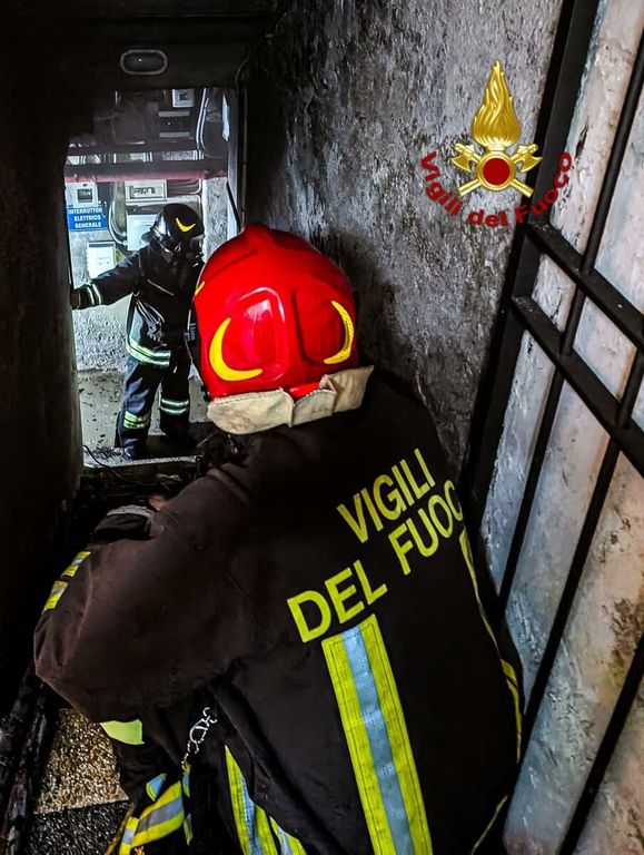 Sul posto cinque squadre dei vigili del fuoco che stanno ancora operando per la messa in sicurezza. L'origine del rogo nella zona delle cantine. Alcune persone, tra cui bambini, soccorse per aver inalato fumo: in tutto sono 14 i residenti coinvolti