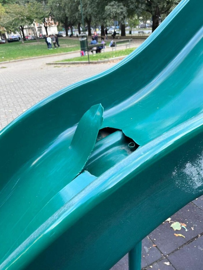 È stato finalmente riparato lo scivolo dell’area gioco del giardino Ferruccio Novo, tra via Buenos Aires, via Gorizia e corso Cosenza, che da settimane versava in condizioni di evidente pericolo per i bambini. Le immagini diffuse nei giorni scorsi avevano mostrato chiaramente la situazione critica della struttura, tanto da spingere alla presentazione di un atto formale per sollecitare un intervento.
