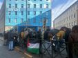Un presidio per i lavoratori e per la Palestina davanti alla sede di Smat di corso XI febbraio. La protesta organizzata dal sindacato Si Cobas e dal collettivo Colpo ha radunato alcuni attivisti in protesta contro la società partecipata del Comune di Torino che gestisce le risorse idriche della provincia.