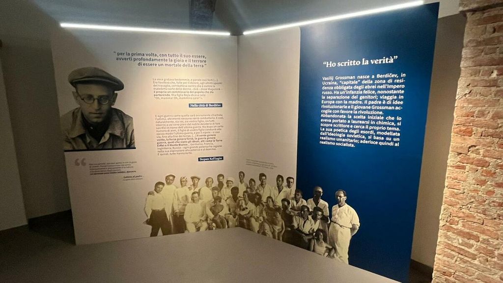 L’allestimento, appena terminato (ecco le foto in anteprima), è ospitato negli spazi del Palazzo San Daniele e offre manoscritti, testimonianze, fotografie inedite, estratti e materiali d’epoca che permettono di ricostruire l’ambiente umano e culturale in cui nacquero opere come Vita e destino. Una sala apposita accoglie la proiezione del cortometraggio Una telefonata di Stalin, tratto dal romanzo più celebre dello scrittore: il film, diretto da Nicola Abbatangelo e interpretato da Alessandro Preziosi su sceneggiatura di Giovanni Maddalena, approfondisce un episodio decisivo della narrazione grossmaniana.