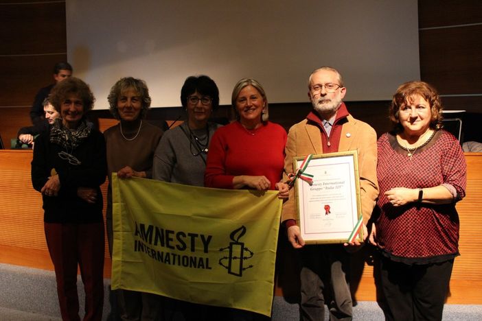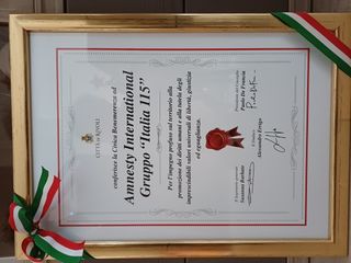 “Per l'impegno profuso sul territorio alla promozione dei diritti umani e alla tutela degli imprescindibili valori universali di libertà, giustizia ed eguaglianza” la Città di Rivoli ha assegnato la Civica Benemerenza al Gruppo Italia 115 di Amnesty International.