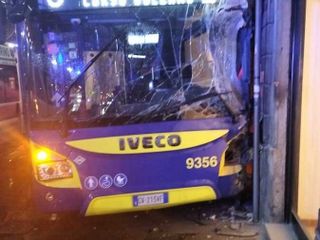 Incidente in via Cernaia, angolo piazza Solferino, dove un autobus si è schiantato contro la vetrina di un negozio.