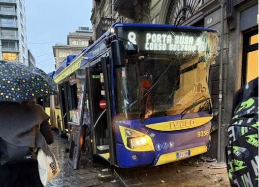 Bus si schianta contro la vetrina di un negozio in via Cernaia: probabile malore del conducente [VIDEO]