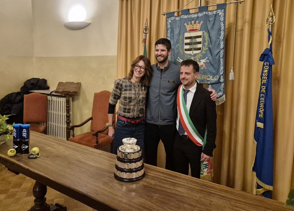 Ha portato l'insalatiera della Davis, fatto foto con il pubblico e rinsaldato il suo legame con Pinerolo. Il doppista Andrea Vavassori è stato accolto poca fa nella sala rappresentanza del Comune per omaggiarlo dopo una stagione nuovamente ad alto livello e la vittoria della Davis, pur senza scendere in campo con il suo compagno storico Simone Bolelli, "perché sono stati bravi Matteo e Flavio (Berrettini e Cobolli che hanno vinto tutti i singolari, ndr)". Vavassori ha anche profilato la possibilità di un nuovo compagno per le Olimpiadi 2028, quando Bolelli avrebbe quasi 43 anni. E uno dei nomi sul tavolo è il torinese Lorenzo Sonego, con cui ha già fatto coppia.