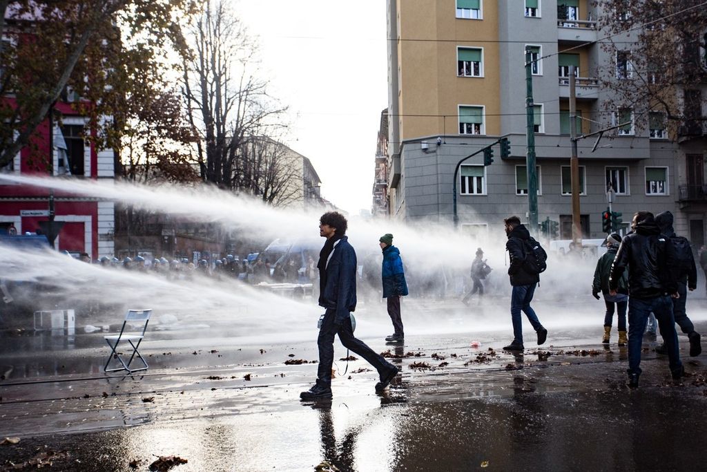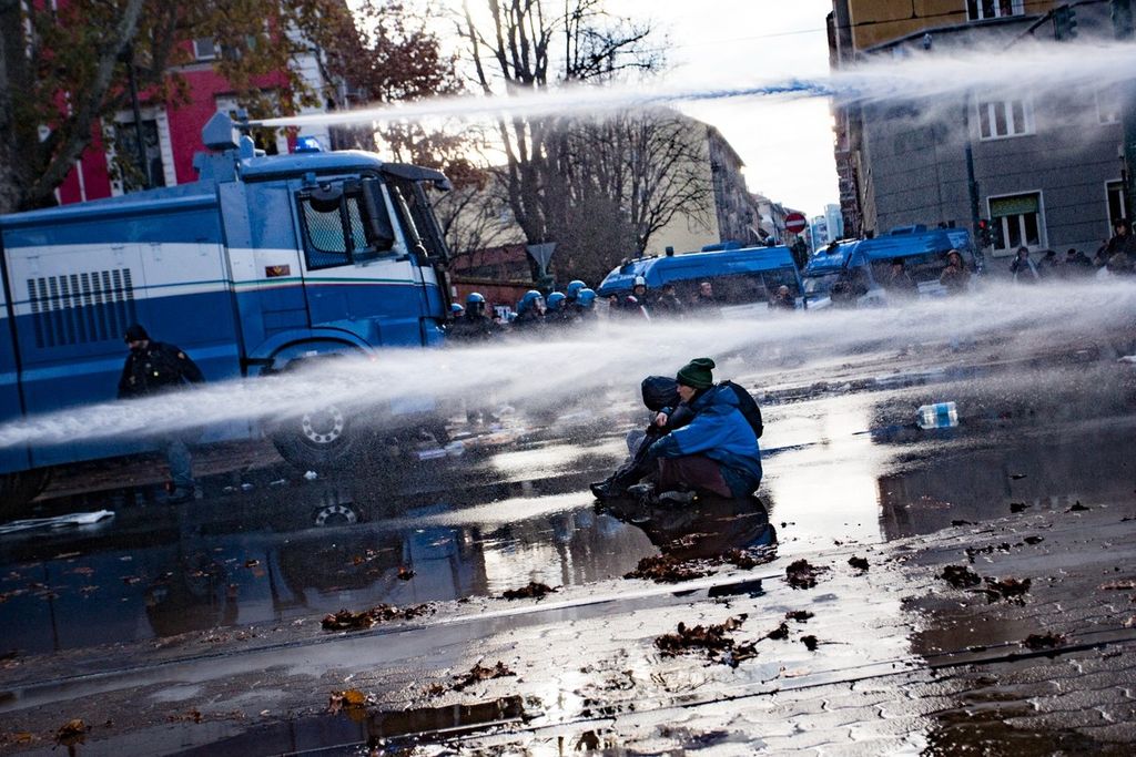 Sotto la pioggia degli idranti, la polizia ha sgomberato, poco dope le 14, il presidio allestito dai militanti davanti all'ex centro sociale Askatasuna. Tavoli, gazebo e striscioni sono stati rimossi mentre alcuni manifestanti hanno cercato di bloccare l’avanzata sedendosi in mezzo a corso Regina Margherita.