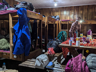 Eravamo sei donne, un gruppo nato per caso ma rivelatosi perfetto. Con noi c’erano guide, portatori, cuochi: una piccola comunità itinerante, ognuno indispensabile. Dormivamo in rifugi semplici: camerate, letti a castello, bagni spartani, una sala ristoro dove ogni gruppo si preparava la cena. Gli accompagnatori bollivano l’acqua, ci portavano una bacinella calda la sera e il mattino per lavarci viso e piedi. Piccoli gesti che, in quota, diventano un lusso.
