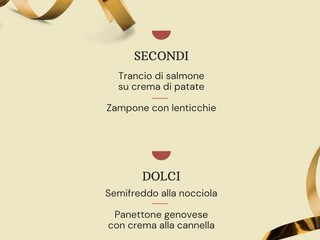 Dolce finale e brindisi di mezzanotteA chiudere il menù di San Silvestro da Trepiasì arriva una dolce coccola: semifreddo alla nocciola accompagnato dal classico panettone genovese, servito con una profumata crema alla cannella.