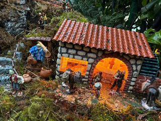 Quando tutto è pronto, le luci fanno il resto. Trecento metri di cavi illuminano il presepe, valorizzando ogni angolo, ogni tetto, ogni sentiero. I materiali sono quelli semplici di una volta: bambù, legna, muschio, pietre, terra e paglia. Nulla di artificiale, se non la pazienza necessaria a tenere insieme tutto. Così, nel cortile di via Rubiana, il Natale non è solo una festa. È un racconto che si ripete, anno dopo anno, e che continua a crescere insieme alla famiglia che lo costruisce.