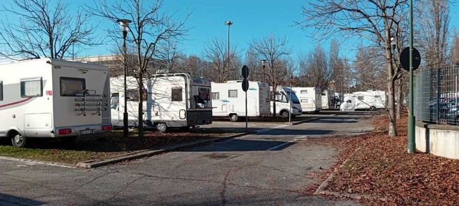 Un periodo natalizio con tanti camper di turisti in sosta nel parcheggio Caio Mario, in corso Unione Sovietica. Sembrano essere stati superati i problemi nati all’incirca un anno fa nell’area occupata da abusivi e degrado.