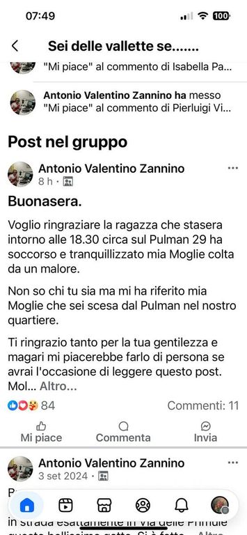 Il messaggio è stato affidato ai social network da Antonio Valentino Zannino, che di mestiere fa il conduttore radiofonico. La donna viaggiava sul pullman della linea 29