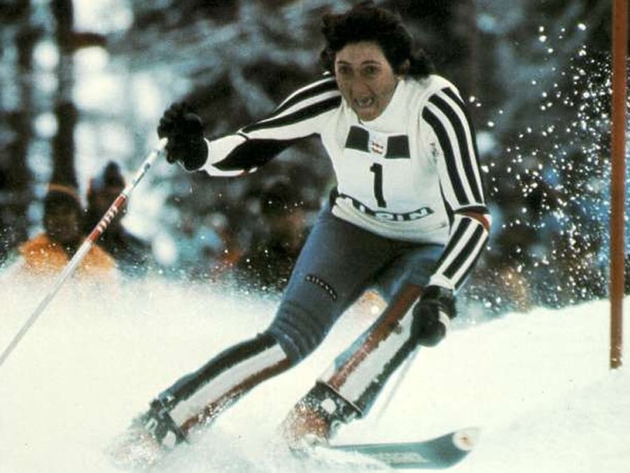[Claudia Giordani durante la discesa olimpica di Innsbruck nel 1976]