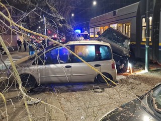 Inevitabile l'impatto tra i due mezzi, con il tram che ha travolto e trascinato la macchina facendo terminare la sua corsa sopra un albero, che è caduto. La Ford Cougar è stata seriamente danneggiata nell'impatto, così come la Multipla parcheggiata sotto la pianta abbattuta.
