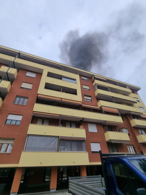 Mansarda in fiamme in via Salvemini n.10, a Venaria Reale. Questa mattina è divampato un rogo, che ha coinvolto l'ultimo piano della palazzina: sul tetto erano in corso dei lavori ed è presumibile che l'incendio sia partito da lì.