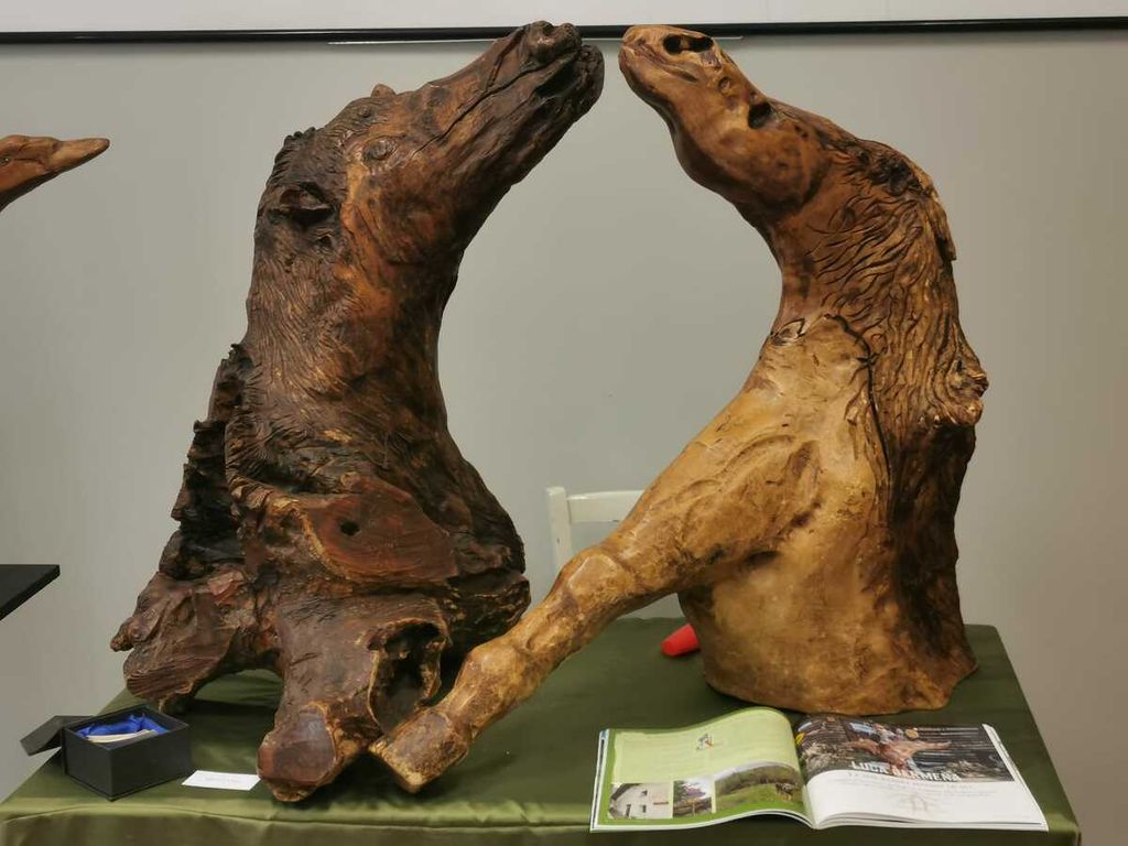 Più di 35 esemplari in marmo e legno oltre a tre lampade a piantana ricavate da travi vecchissimi. "Io non mi ritengo scultore - spiega -, ma piuttosto l’esecutore di progetti, modelli, disegni di una grande maestra: la natura. Miei collaboratori sono il vento, la pioggia, il gelo, il fulmine, il passare inesorabile del tempo".